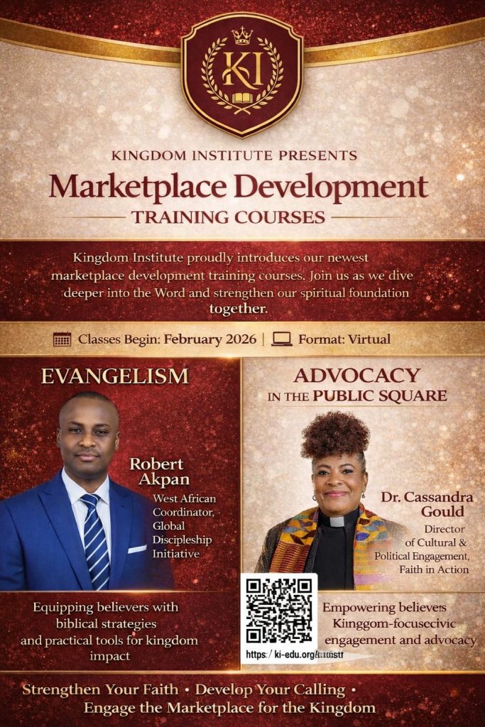 Kingdom Institute (KI) is the academy of Kingdom First Ministries. This academy is the central hub for training and development. KI offers developmental training in the gifts of the Spirit, Apostolic Offices and Marketplace basics. Initial offerings are done in four (4) week training sessions designed to equip persons with an introductory understanding for use in the church and marketplace.